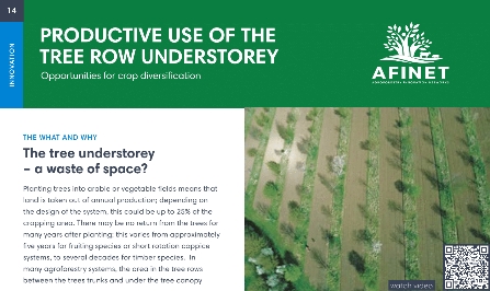 14 Productive use of the tree row understorey Planting trees into arable or vegetable fields means that land is taken out of annual production; depending on the design of the system, this could be up to 25% of the cropping area. |