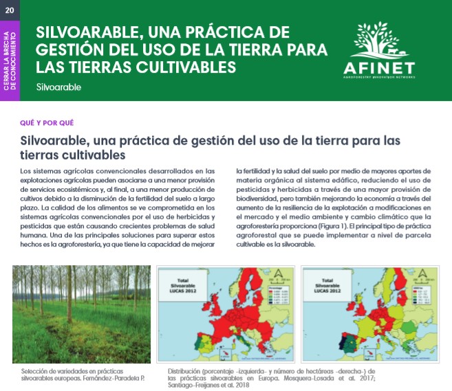 20 Silvoarable, una práctica de gestión del uso de la tierra para las tierras cultivables Los sistemas agrícolas convencionales desarrollados en las explotacionesagrícolaspuedenasociarseaunamenorprovisión de servicios ecosistémicos y, al final, a una menor producción de cultivos debido a la disminución de la fertilidad del suelo a largo plazo. Download the high resolution print version (available soon) |