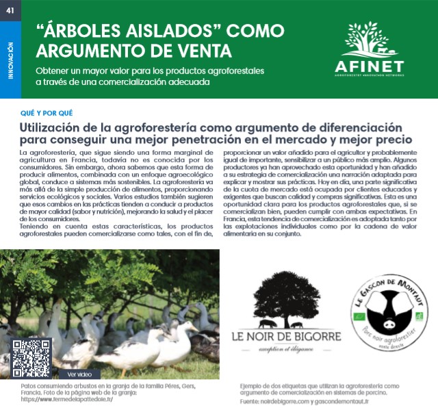 41 "Árboles aislados" como argumento de venta La agroforestería, que sigue siendo una forma marginal de agricultura en Francia, todavía no es conocida por los consumidores. Sin embargo, ahora sabemos que esta forma de producir alimentos, combinada con un enfoque agroecológico global, conduce a sistemas más sostenibles. Download the high resolution print version (available soon) |