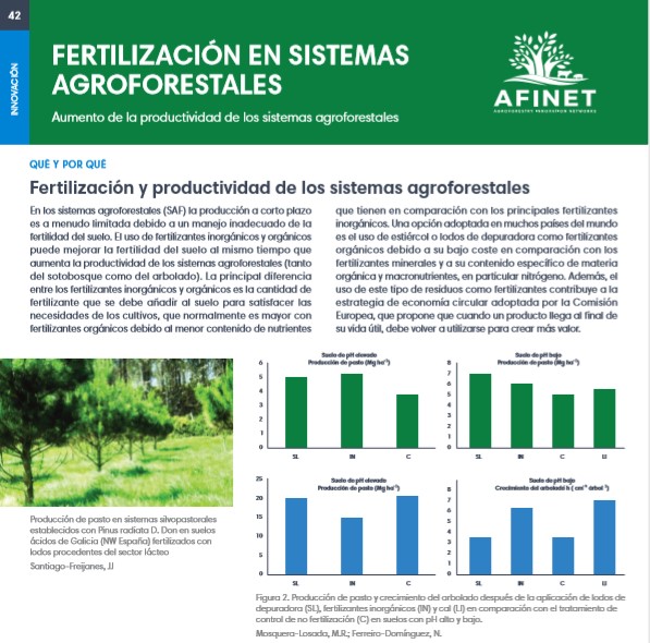 42 Fertilización en sistemas agroforestales En los sistemas agroforestales (SAF) la producción a corto plazo es a menudo limitada debido a un manejo inadecuado de la fertilidad del suelo. El uso de fertilizantes inorgánicos y orgánicos puede mejorar la fertilidad del suelo al mismo tiempo que aumenta la productividad de los sistemas agroforestales (tanto del sotobosque como del arbolado). Download the high resolution print version (available soon) |
