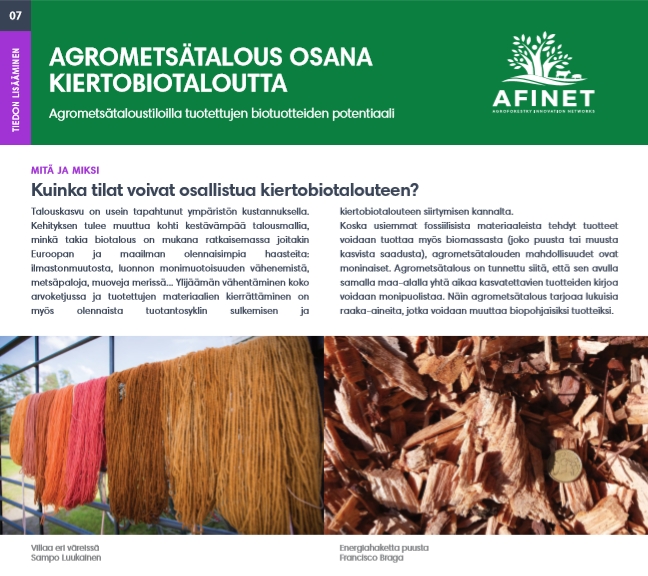 07 Agrometsätalous osana kiertobiotaloutta Talouskasvu on usein tapahtunut ympäristön kustannuksella. Kehityksen tulee muuttua kohti kestävämpää talousmallia, minkä takia biotalous on mukana ratkaisemassa joitakin Euroopan ja maailman olennaisimpia haasteita: ilmastonmuutosta, luonnon monimuotoisuuden vähenemistä, metsäpaloja, muoveja merissä... |