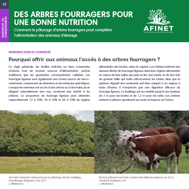 12 Des arbres fourragers pour une bonne nutrition En règle générale, les feuilles fraîches ou bien conservées d’arbres sont de bonnes sources d’alimentation, parfois meilleures que les graminées communément cultivées. Les fourrages ligneux sont également une bonne source de micronutriments, notamment de vitamines et de minéraux spécifiques. Télécharger la version HD imprimable (disponible bientôt) |