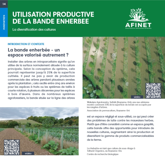 14 Utilisation productive de la bande enherbee Installer des arbres en intraparcellaire signifie qu’on utilise de la surface normalement allouée à la culture principale. Selon la conception du système, cela pourrait représenter jusqu'à 25% de la superficie cultivée. Télécharger la version HD imprimable (disponible bientôt) |
