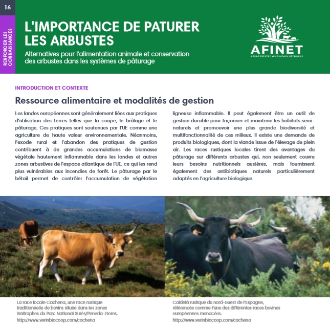 16 L'importance de paturer les arbustes Les landes européennes sont généralement liées aux pratiques d'utilisation des terres telles que la coupe, le brûlage et le pâturage. Ces pratiques sont soutenues par l'UE comme une agriculture de haute valeur environnementale. Néanmoins, l’exode rural et l'abandon des pratiques de gestion contribuent à de grandes accumulations de biomasse végétale hautement inflammable dans les landes et autres zones arbustives de l'espace atlantique de l'UE, ce qui les rend plus vulnérables aux incendies de forêt. Télécharger la version HD imprimable (disponible bientôt) |