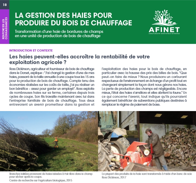 18 La gestion des haies pour produire du bois de chauffage Ross Dickinson, agriculteur et fournisseur de bois de chauffage dansle Dorset, explique: "J'ai changé la gestion d'une de mes haies, passant de la taille annuelle à une coupe tous les 15 ans pour la production de bois de chauffage. Compte tenu des économies réalisées sur les coûts de taille, j'ai pu réaliser un bon bénéfice - assez pour garder une mployé". Télécharger la version HD imprimable (disponible bientôt) |