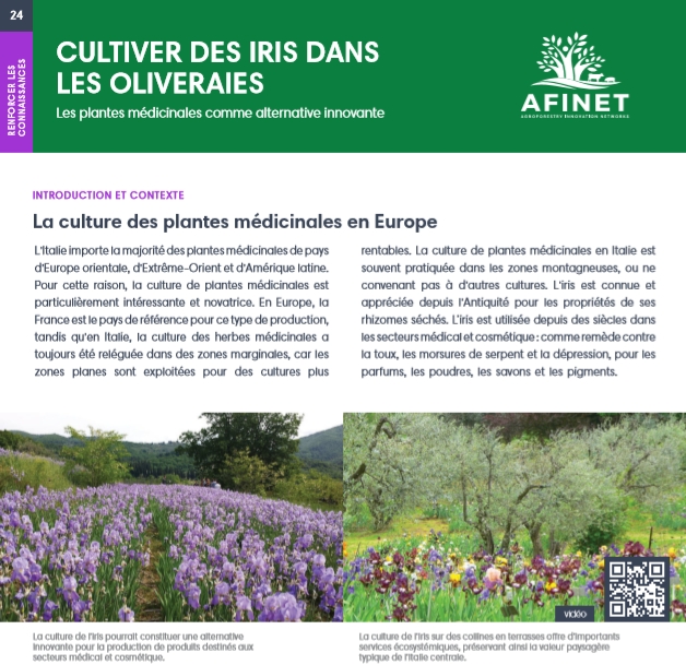 24 Cultiver des iris dans les oliveraies L'Italie importe la majorité des plantes médicinales de pays d'Europe orientale, d'Extrême-Orient et d'Amérique latine. Pour cette raison, la culture de plantes médicinales est particulièrement intéressante et novatrice. |