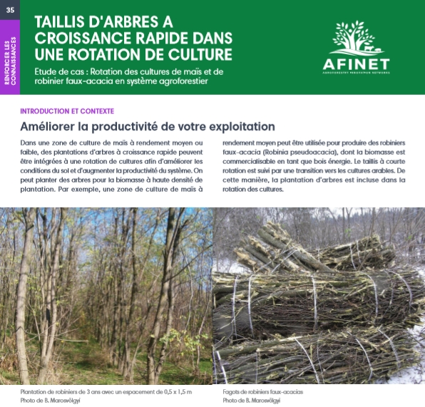 35 Taillis d'arbres a croissance rapide dans une rotation de culture Dans une zone de culture de maïs à rendement moyen ou faible, des plantations d'arbres à croissance rapide peuvent être intégrées à une rotation de cultures afin d'améliorer les conditions du sol et d'augmenter la productivité du système. |