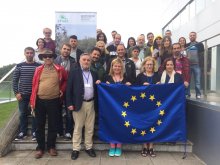The meeting started with a visit to an experimental agroforestry field at ILVO, where a variety trial of hazelnut trees was recently established, and where the effects are studied of combining short-rotation coppice (willow) or hazelnut trees with laying hens on free-range use, animal welfare, soil conditions and plant growth.