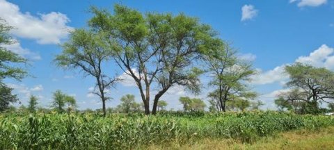 Faiderbia albida coming into leaf in a maize field near Mazabuka