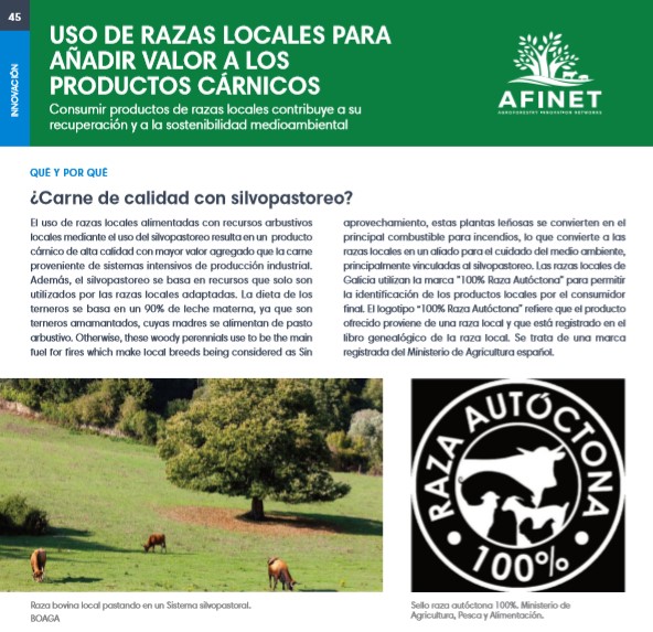 45 Uso de razas locales para añadir valor a los productos cárnicos El uso de razas locales alimentadas con recursos arbustivos locales mediante el uso del silvopastoreo resulta en un producto cárnico de alta calidad con mayor valor agregado que la carne proveniente de sistemas intensivos de producción industrial. Además, el silvopastoreo se basa en recursos que solo son utilizados por las razas locales adaptadas.