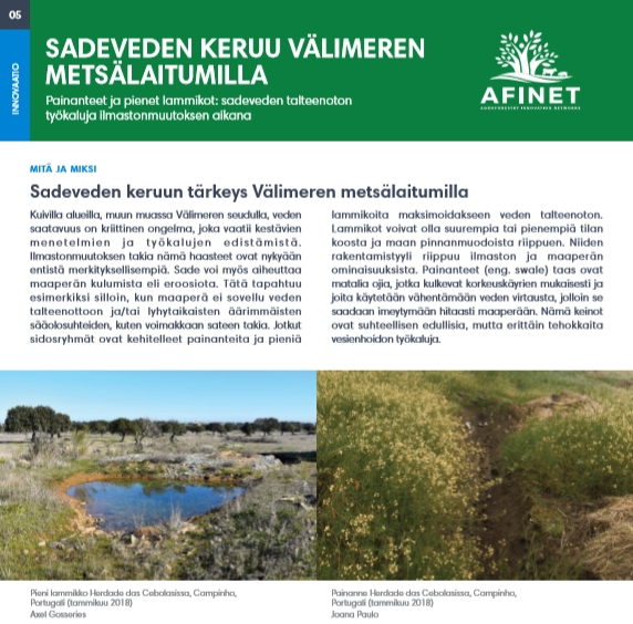 05 Sadeveden keruu välimeren metsälaitumilla Kuivilla alueilla, muun muassa Välimeren seudulla, veden saatavuus on kriittinen ongelma, joka vaatii kestävien menetelmien ja työkalujen edistämistä. Ilmastonmuutoksen takia nämä haasteet ovat nykyään entistä merkityksellisempiä. |