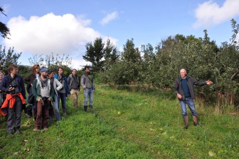Because of the growing interest in agroforestry in Flanders and the raised questions on how to apply agroforestry in horticulture, the Consortium ‘Agroforestry in Flanders’ organised in September 2017 an excursion to the UK. With a  group of fifty interested farmers and researchers, we visited Martin Crawford (Agroforestry Research Trust), Martyn Bragg (Shillingford Organics), Duchy Home Farm, and Iain Tolhurst (Tolhurst Organic).