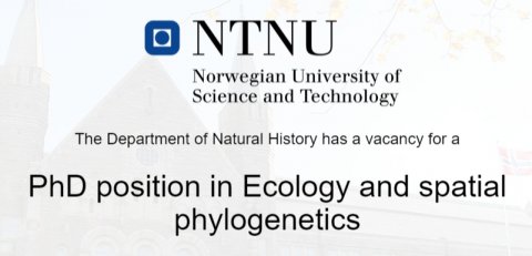 The Norwegian University of Science and Technology (Trondheim) Department of Natural History is seeking a highly qualified, ambitious and motivated candidate for a PhD-position. The position will investigate the functional and phylogenetic basis of trophic interactions across large spatial scales.